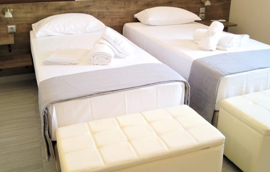 The apartments can accommodate from 4-6 people and are located 400m from the beach Zavia and 800m from the port center (decentralized one could characterize the area).