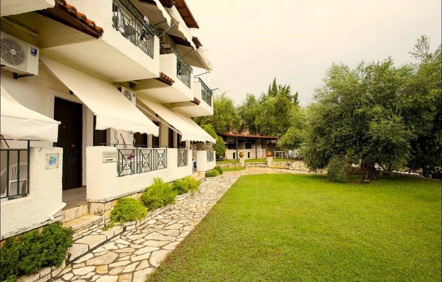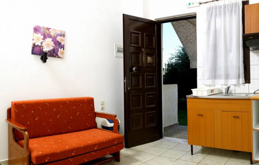 The apartments are surrounded by trees and flowers. At the yard, there is a stone hand-made barbecue, with a traditional oven, grill, and Greek traditional “gastra” (food is cooked in a special baking tray and covered with charcoal). There are tables and chairs to be used by you and your friends and family.