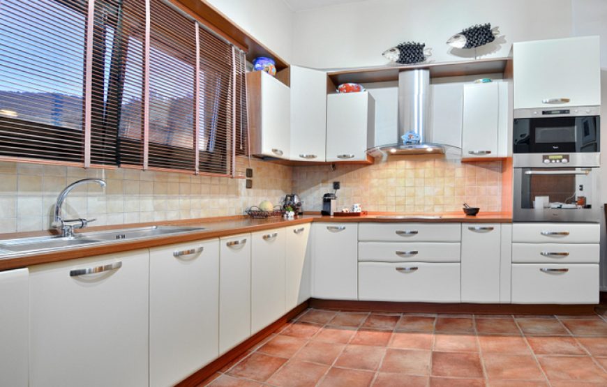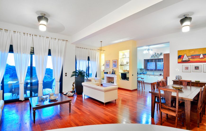 The villa has two floors. In the first there is a spacious living room with dining area, a fully organized kitchen with modern appliances (American refrigerator, dishwasher, Nespresso coffee machine, toaster, oven, microwave) fireplace, four bedrooms (3 en suite), a separate bathroom and completely independent entrance to the villa.
